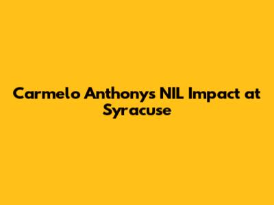 Carmelo Anthony's NIL Impact At Syracuse