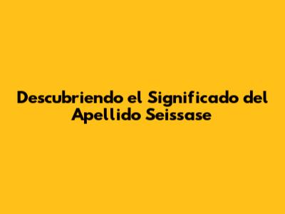 ¡Hola a todos! Hoy vamos a sumergirnos en el fascinante mundo de la genealogía y la onomástica para desentrañar el significado del apellido Seissase. Si te apellidas así, o simplemente sientes curiosidad por el origen de los apellidos, estás en el lugar correcto. Acompáñenme en este viaje donde exploraremos los posibles orígenes, las variantes y la historia que podría esconder este apellido poco común. Vamos a desglosar todo lo que podamos sobre el significado del apellido Seissase, buscando pistas en la historia y la etimología. ¿Listos para comenzar?