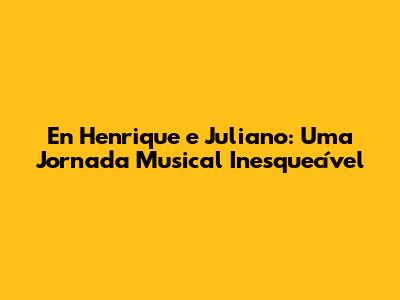 En Henrique E Juliano: Uma Jornada Musical Inesquecível