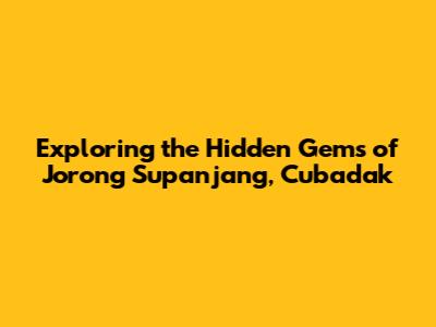 Hey guys, let's dive into the amazing world of Jorong Supanjang, which is nestled in the heart of Nagari Cubadak! I'm super excited to take you on a journey through this unique place, exploring its culture, natural beauty, and the warm-hearted people who call it home. Get ready to discover why Jorong Supanjang is a must-visit destination for anyone looking for an authentic and unforgettable experience. This little corner of the world is packed with hidden gems, waiting to be uncovered. So, buckle up, and let's get started on this incredible adventure together! We're going to explore what makes Jorong Supanjang such a special place, from its stunning landscapes to the rich traditions that have been passed down through generations. I'll share some insights into the local way of life, the delicious food, and the must-see spots that will make your visit truly memorable. Plus, I'll give you some tips on how to make the most of your time there, ensuring you have an amazing time. Are you ready to discover the beauty and charm of Jorong Supanjang? Let's go!