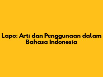 Lapo: Arti Dan Penggunaan Dalam Bahasa Indonesia