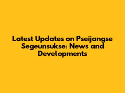 Latest Updates On Pseijangse Segeunsukse: News And Developments