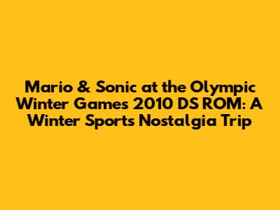 Hey gaming fanatics! Remember those frosty days of 2009 and 2010? The buzz around the Vancouver Winter Olympics was electric, and right alongside it, we had a fantastic game to get us in the mood: Mario & Sonic at the Olympic Winter Games for the Nintendo DS! If you're anything like me, you probably spent hours diving into this game, competing in all sorts of winter sports, and laughing with your friends. But maybe, just maybe, you've lost your original cartridge, or perhaps you're just looking for a way to relive those amazing moments. Well, that's where the Mario & Sonic at the Olympic Winter Games 2010 DS ROM comes into play. Let's take a trip down memory lane and explore everything you need to know about this gem, how to experience it again, and why it still holds a special place in our gaming hearts.