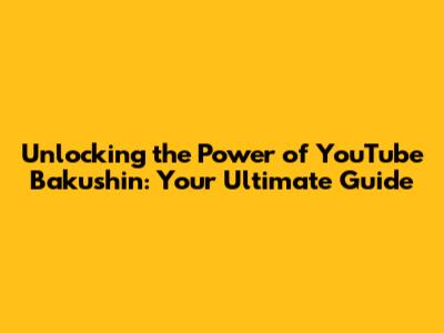 YouTube Bakushin: The Ultimate Guide
